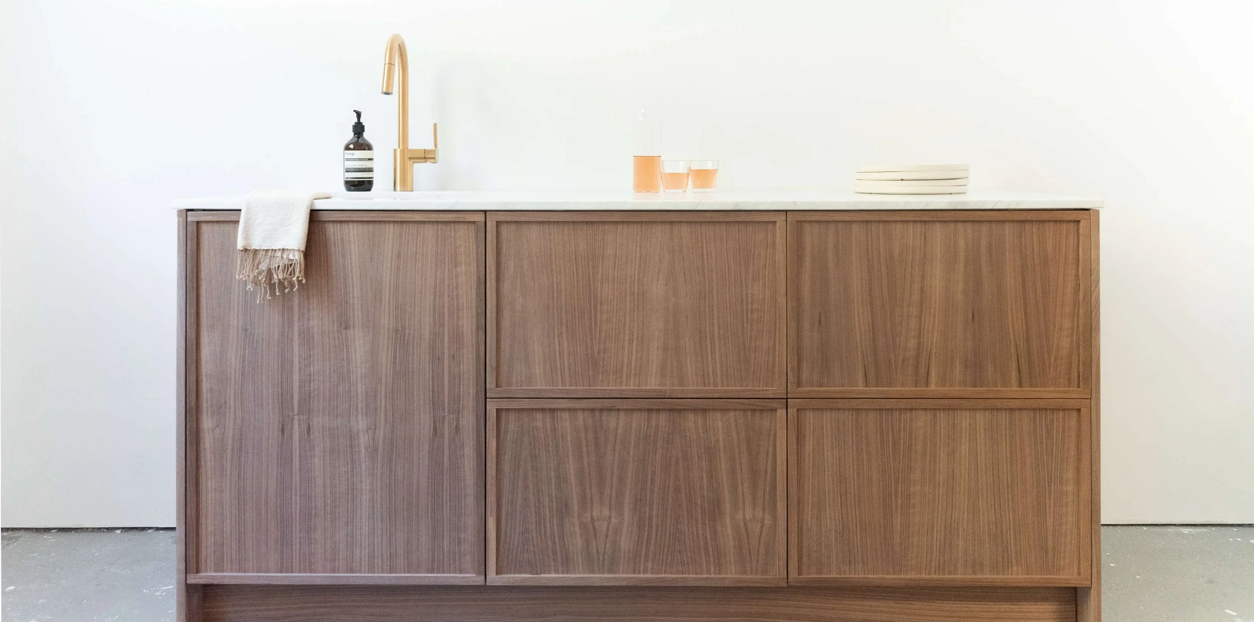 This allows you to leverage Ikea’s cabinet system while expanding from Ikea’s options to include our real wood, high quality cabinet fronts.